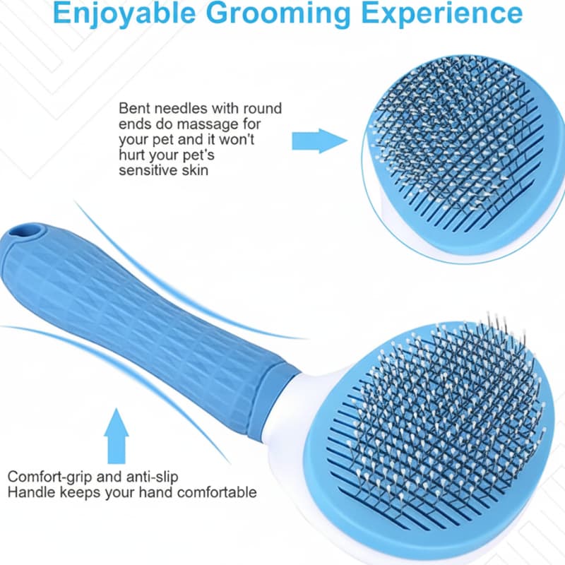 The bristles are made of plastic with rounded tips, so they glide through fur without any scratching or pulling. What really sold me was the self-cleaning button. You brush your cat, press the button, and a perfect little patty of fur pops right off. No picking hair out of bristles for twenty minutes, no fur flying everywhere when you try to clean it.